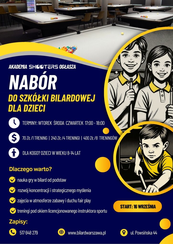 Dołącz do nas i pozwól swojemu dziecku odkryć fascynujący świat bilardu – sportu precyzji, cierpliwości i kreatywności!